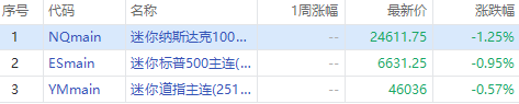 美股三大指数期货盘前齐跌,纳指期货 $NQmain 跌1.25%,标普500期货 $ESmain 跌0.95%,道指期货 $YMmain 跌0.57%。