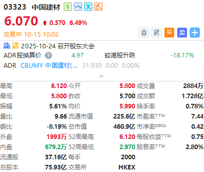 消息面上,中国建材10月14日发布公告,预期集团截至2025年9月30日止九个月未经审核的权益持有人应占利润约为人民币29.50亿元,而截至2024年9月30日止九个月的权益持有人应占亏损约为人民币6.84亿元。