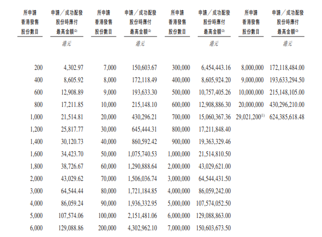 - 发售价格:每股招股价20.3-21.3港元,每手200股,一手入场费4302.97港元