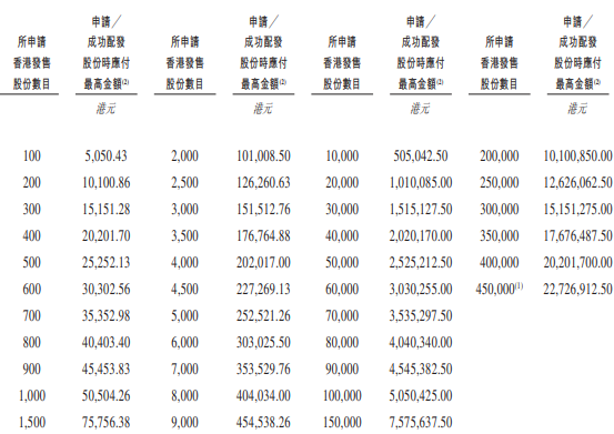- 发售价格:每股招股价45-50港元,每手100股,一手入场费5050.43港元