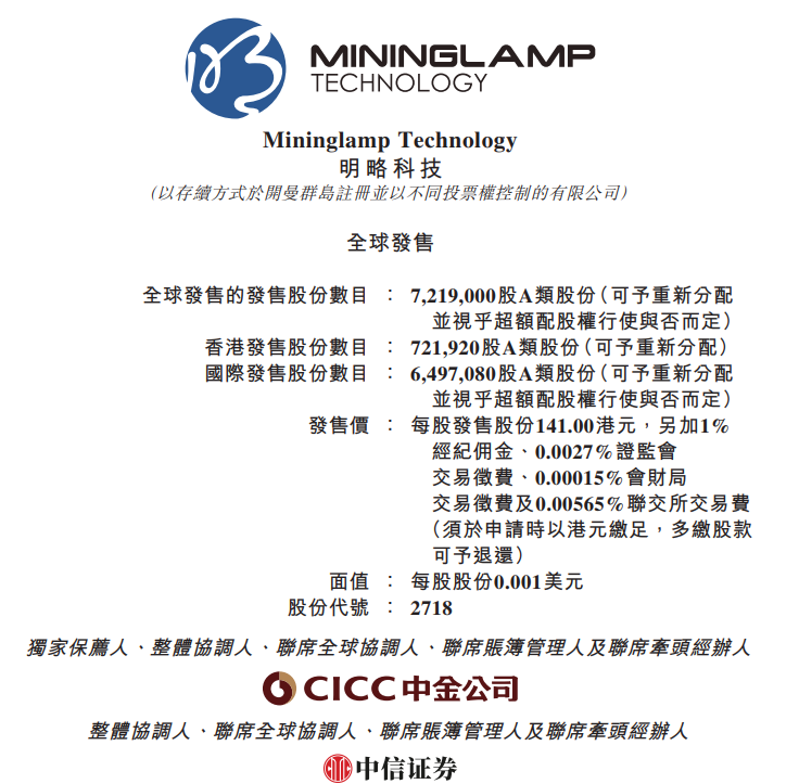 - 发售价格:每股发行价为141.00港元,每手40股,一手入场费为5696.88港元