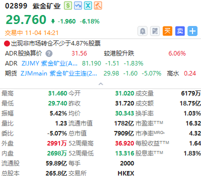 华盛资讯11月04日讯,港股黄金股午后持续走低,截至发稿,灵宝黄金跌超7%,紫金矿业跌近6%,赤峰黄金跌超5%,紫金黄金国际、招金矿业跌超4%。