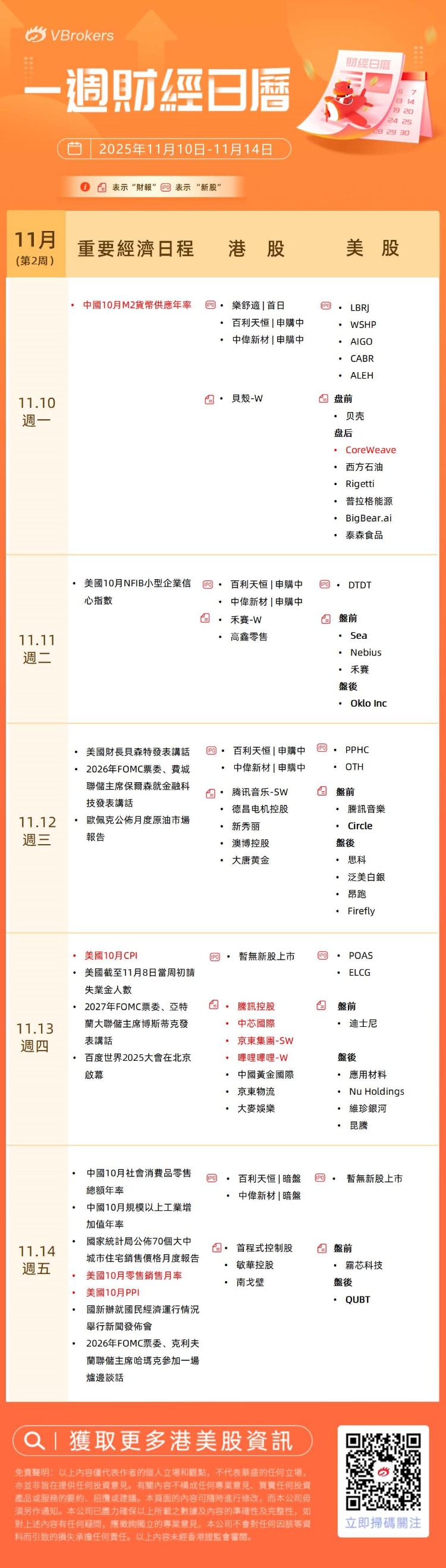 编者按:财报重磅周!腾讯、京东、中芯国际下周四公布业绩;美国10月CPI携零售数据来袭!美国政府能否结束停摆?数据还能否如期公布;乐舒适下周一上市。