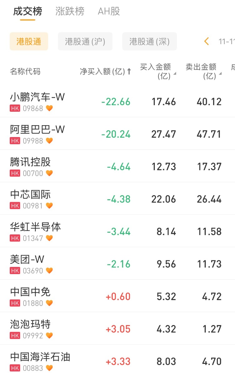 小鹏汽车-W 、阿里巴巴-W、腾讯控股分别遭净卖出22.66亿港元、20.24亿港元、4.64亿港元。