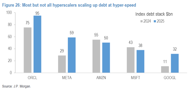 (大多数超大规模云计算企业都在以极快的速度增加债务规模)