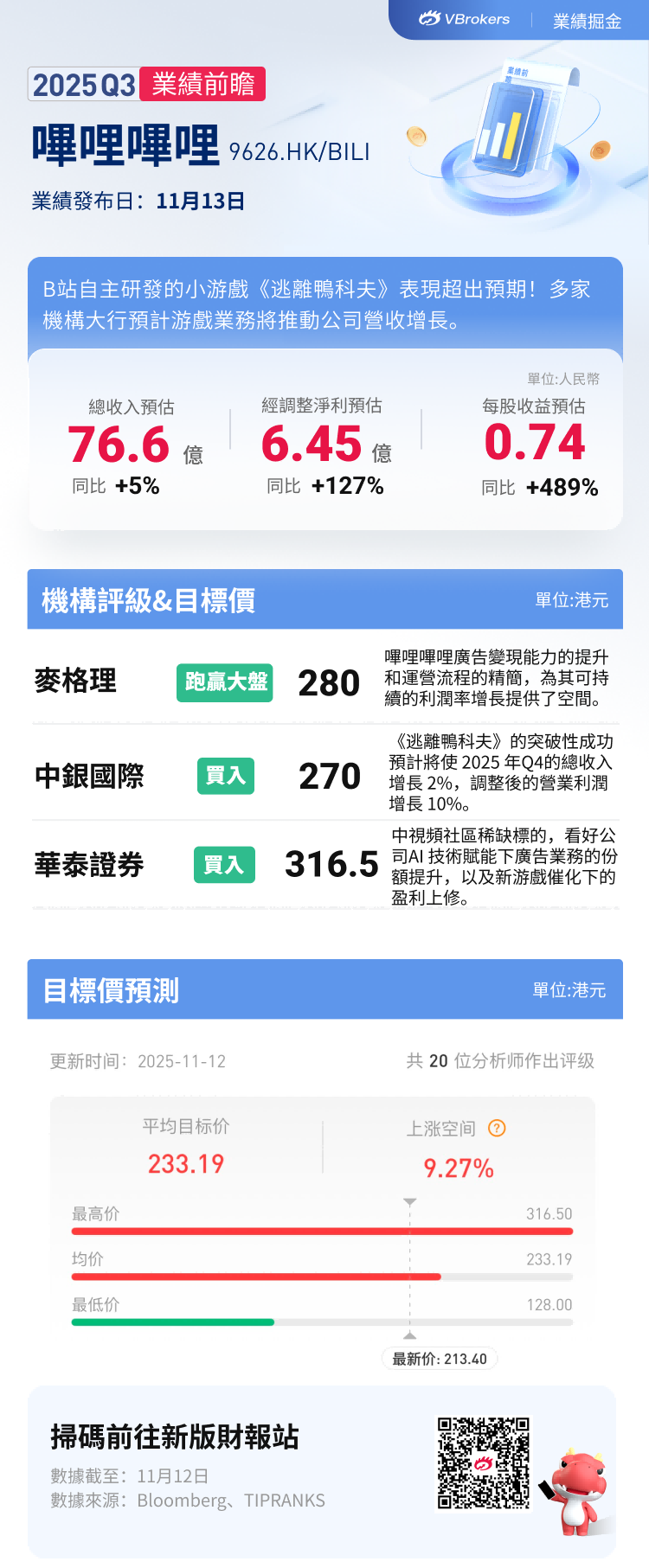 直播预告:哔哩哔哩 (09626.HK,BILI.US) 2025年第三季度业绩电话会 | 11.13 20:00