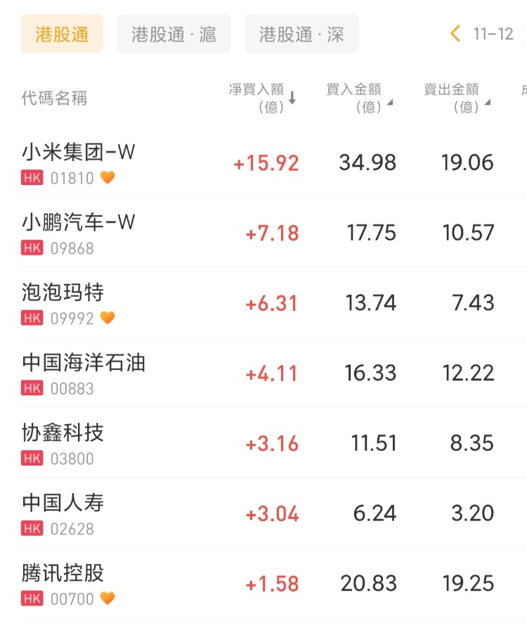 小米集团-W、小鹏汽车-W、泡泡玛特分别获净买入15.92亿港元、7.18亿港元、6.31亿港元;