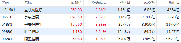 华盛资讯11月14日讯,港股互联网医疗概念逆势走高!京东健康大涨超7%,Q3营收盈利大增超1倍;平安好医生涨超3%,叮当健康涨超2%,阿里健康涨超1%。