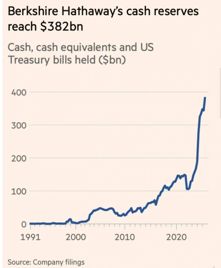 与“大空头”和达里奥的直接表态相比,“股神”巴菲特虽然明面上没有对股市表达任何悲观看法,但却一直在囤积现金。根据伯克希尔最新公布的三季度财报,当前公司的现金等价物已经达到3820亿美元,这一数字比上一季度增加了376亿美元,相当于每天增加4.2亿美元。与此同时,伯克希尔还在持续持续抛售股票:过去三年,公司已累计净卖出约1840亿美元的股票,仅在第三季度就再度抛售了价值61亿美元的普通股。