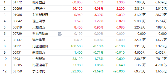 华盛资讯11月17日讯,港股锂电池板块走势分化,赣锋锂业涨近6%,天齐锂业涨超4%,宁德时代跌近4%。