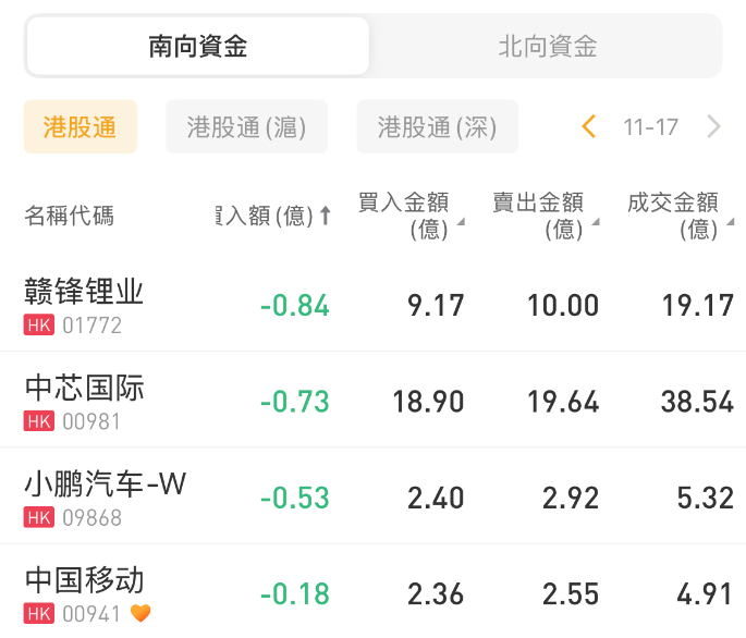 南向资金买入阿里巴巴-W 超20亿港元,卖出赣锋锂业、中芯国际