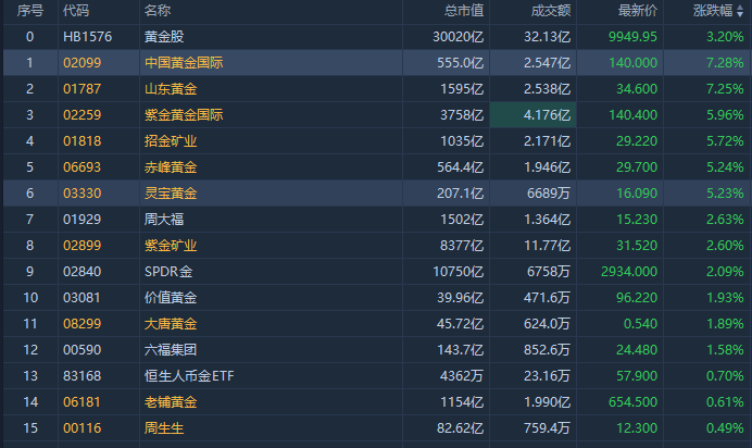 华盛资讯11月19日讯,黄金股午后涨幅扩大,截至发稿,中国黄金国际、山东黄金涨超7%,紫金黄金国际涨近6%,招金矿业、赤峰黄金涨超5%。