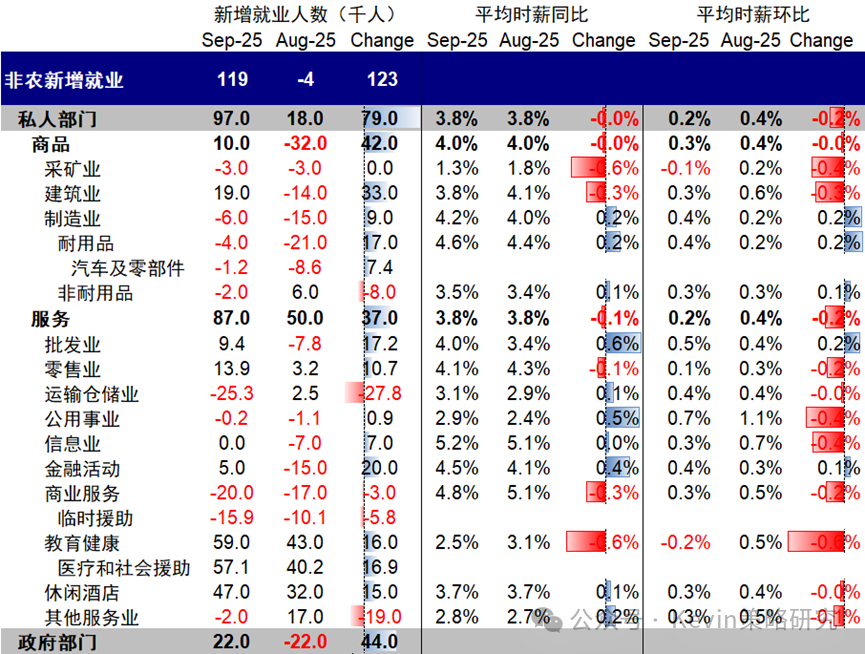 但细看之后,几个信息使其强劲“大打折扣”:1)9月环比大幅增加受8月低基数影响太大,如果看两月平均,8-9月月均新增就业仅5.75万人,很一般;2)7月从7.9万人下修至7.2万人,下修0.7万;8月从2.2万人下修至-0.4万人,下修2.6万人;合计下修3.3万人;3)失业率走高至4.4%。所以,综合来看,这个数据充其量只能说明没8月那种净减少0.4万人得太过异常,但也绝难言强劲,更何况这已经是2个月前的数据。