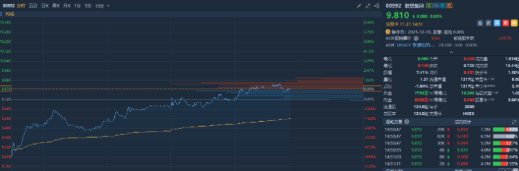 华盛资讯11月21日讯,联想集团午后转涨,截至发稿,联想集团涨近1%。