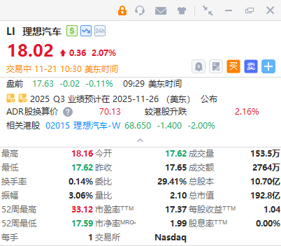 理想汽车涨超2%,公司今日发布智驾新功能,强化全栈自研布局。