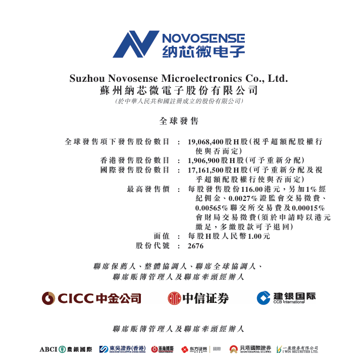 华盛资讯11月28日讯,今日纳芯微(688052.SH/02676.HK)和卓越睿新(02687.HK)开启申购,两只新股将于2025年12月8日(星期一)正式开始在联交所买卖。