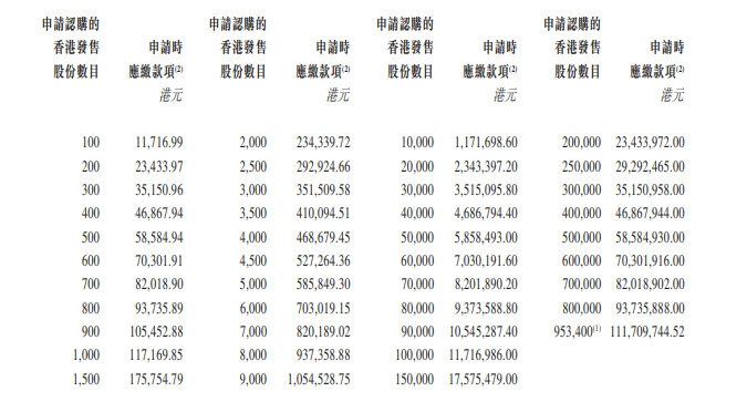 - 发售价格:发售价不会高于每股发售股份116.00港元,每手100股,一手入场费为11716.99港元。