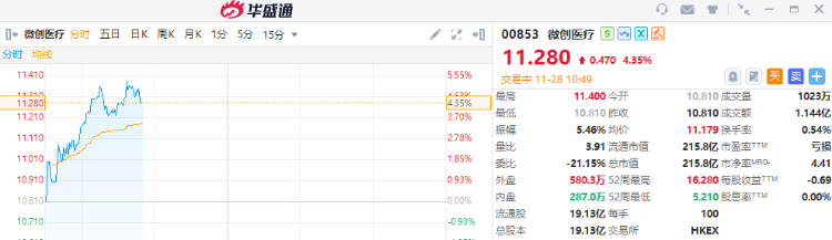 11月24日,摩根大通增持微创医疗8906.0433万股,每股作价10.4413港元,总金额约为9.3亿港元。增持后最新持股数目约为2.76亿股,持股比例为14.44%。