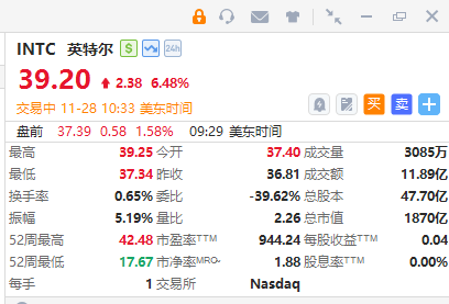 华盛资讯11月28日讯,美股明星科技股走势分化!英特尔盘大涨超6%,有分析称英特尔或成TPU行情背后“隐形赢家”;