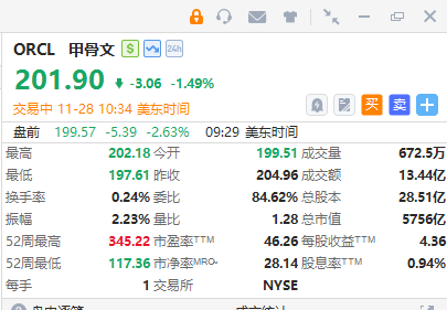 甲骨文跌约1.5%,计划再贷380亿美元投资AI基建。