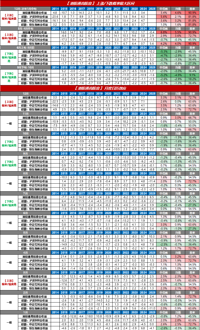 此外,港股通高股息全收益指数,日历效应较强的区间: