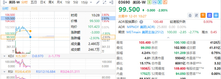 华盛资讯12月1日讯,美团-W绩后窄幅震荡,一度涨约0.5%,现跌近3%。消息面上,公司近三年来首次季度亏损,第三季度调整后净亏损160亿元人民币,管理层电话会称:亏损已见顶,进行必要投入以维持领导地位,但不会参与价格战。