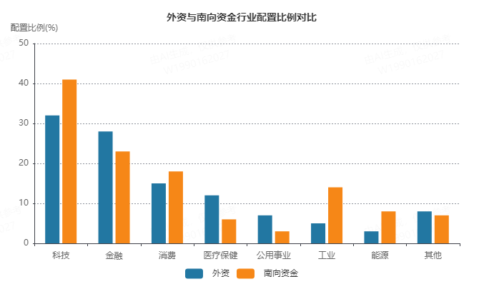尽管在三大板块存在共识,但外资与南向资金在其他行业的配置上呈现显著差异: