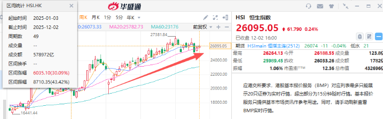 截至发稿,恒生指数年内已涨超30%,这表明全球风险偏好正在重塑,资金正加速流向受困于多年低估值,但具备高增长潜力和宏观政策支撑的亚洲市场,尤其是在利率环境宽松预期下的香港股市,迎来了估值修复的主升浪。