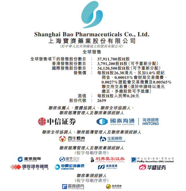 - IPO保荐人:中信证券、国泰海通/海通国际