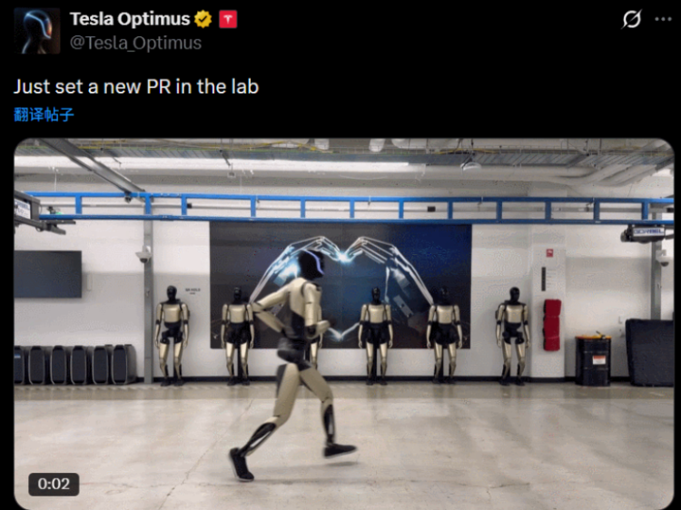 特斯拉Optimus团队周三在社交媒体上发布了一段机器人跑步的视频,并配文称“刚在实验室刷新了纪录”。