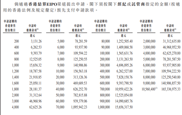 - 发售价格:每股发售价12.7港元-15.5港元,每手200股,入场费约3131.26港元