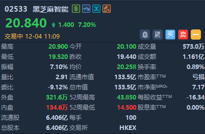 华盛资讯12月4日讯,半导体板块盘中走强,黑芝麻智能涨超7%、华虹半导体涨超3%,上海复旦、中芯国际涨超2%。