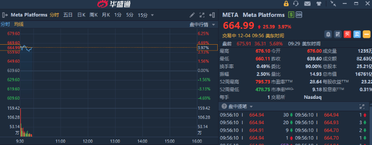 华盛资讯12月4日讯,美股大型科技股走势分化,Meta涨近4%,英伟达、特斯拉涨超1%。