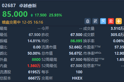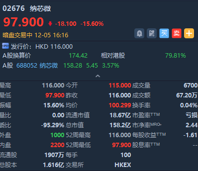 华盛资讯12月5日讯,港股卓越睿新、纳芯微正在暗盘交易中。