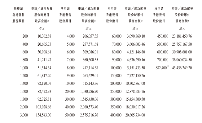 - 发售价格:每股发售价格38.2-51港元。,每手200股,入场费10302.88港元