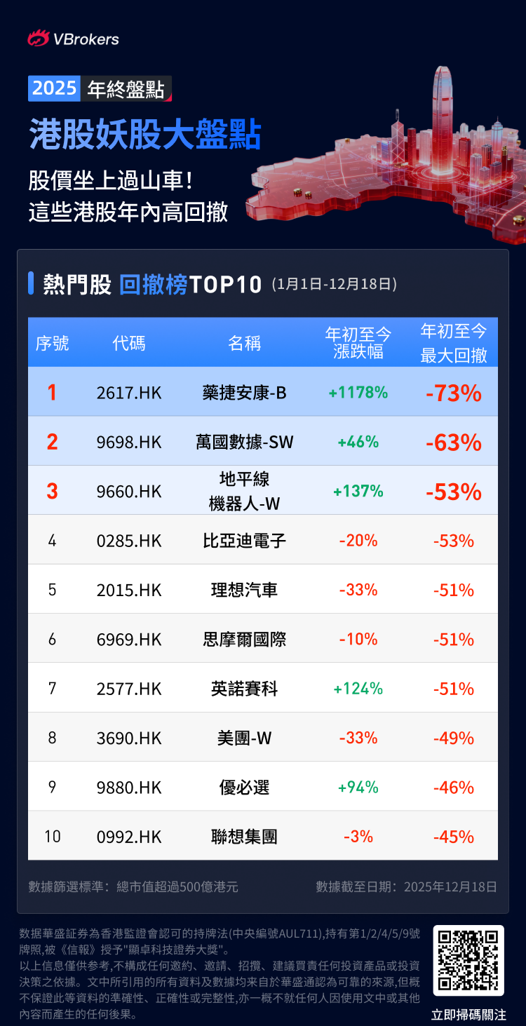 指数回报尚可,但账户表现却参差不齐?在社区中,有部分發友表示自己的账户并没有跟上指数,也有發友留言称持股体验太过动荡起伏!基于此,华盛资讯特意为投资者整理2025年的港股市场中的热门股,并借此盘点一下那些持续上涨的牛股、动荡起伏的“妖”股,还有一蹶不振的熊股。