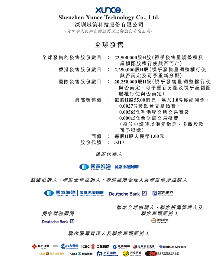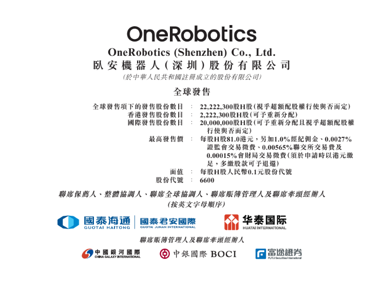 - IPO保荐人:国泰海通、华泰国际为联席保荐人