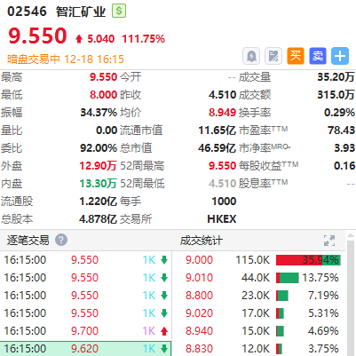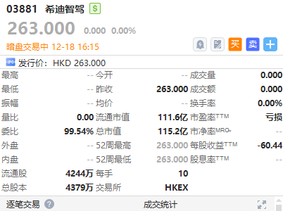 华盛资讯12月18日讯,港股智汇矿业、希迪智驾正在暗盘交易中。