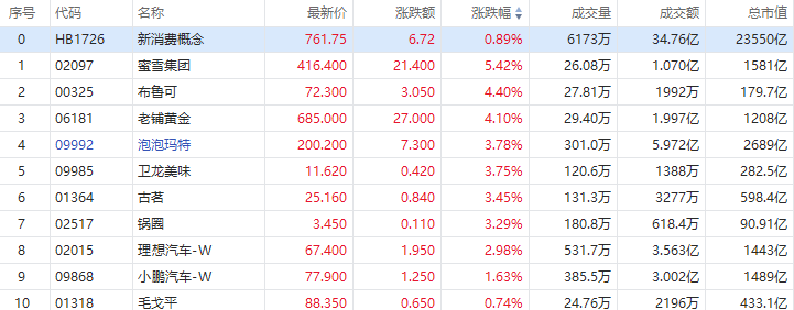华盛资讯12月22日讯,港股新消费概念股持续上扬!截至发稿,蜜雪集团涨超5%,布鲁可涨超4%,泡泡玛特涨超3%。