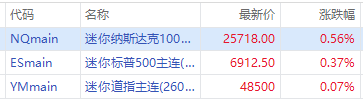 周一盘前,三大股指期货齐涨,截至发稿,纳指期货 $NQmain 涨0.56%,标普500期货 $ESmain 涨0.37%,道指期货 $YMmain 涨0.07%。