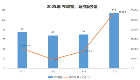 截至12月24日,港交所已迎来108只新股挂牌,加上月底即将上市的6只,全年预计共114只新股上市,同比大增62.9%;募资总额高达约2860亿港元,同比激增225.1%,不仅创下近三年新高,更助力港交所跃居全球IPO融资榜首。