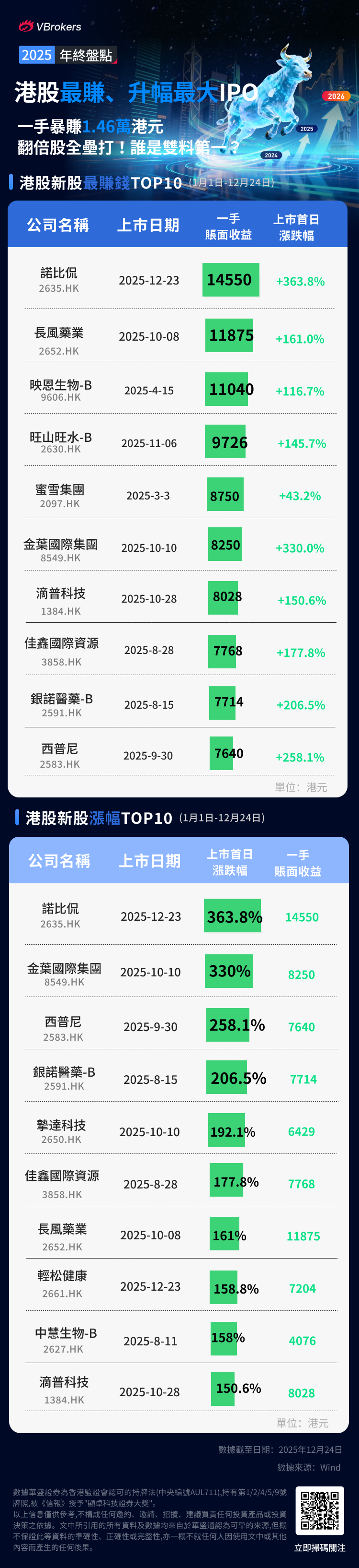 2025年最赚钱、升幅最大新股TOP10