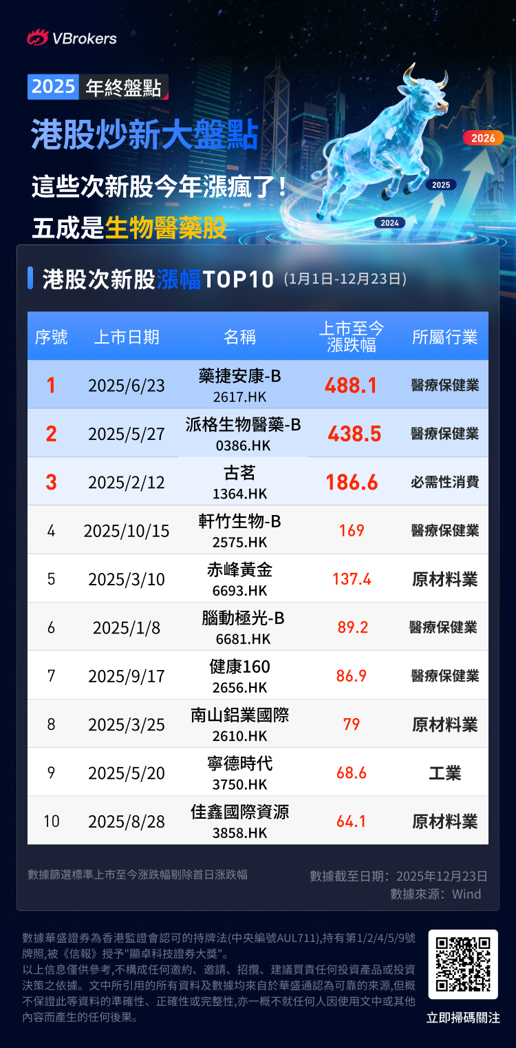 2025年,次新股无疑成为港股市场上一道亮丽的风景线,上市之后持续走强的个股不断涌现,跑出了多只真正意义上的“次新牛股”。其中,生物医药板块表现尤为抢眼。