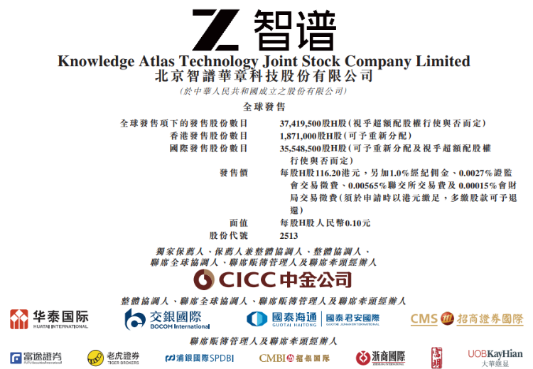 以每股116.20港元发行价计算,智谱华章本次募资规模预计将达43亿港元,本次IPO市值预计超511亿港元。