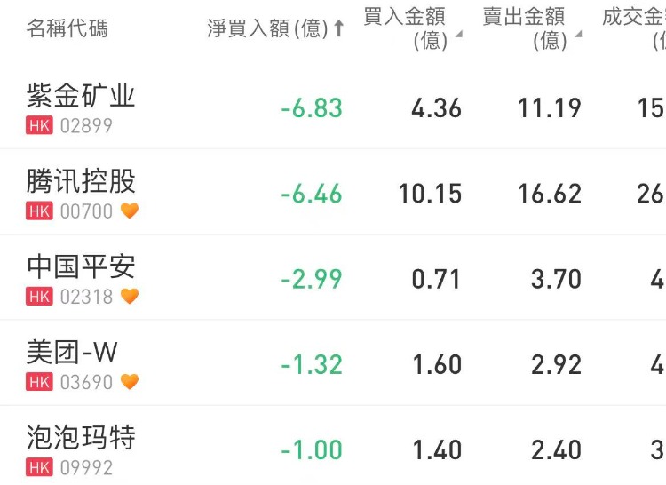 盈富基金、腾讯控股、中国平安遭南向资金净卖出额居前,分别遭净卖出6.83亿港元、6.46亿港元、2.99亿港元。