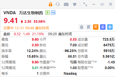 华盛资讯12月31日讯,万达生物制药大涨超33%,旗下晕动症药物获美国FDA批准。