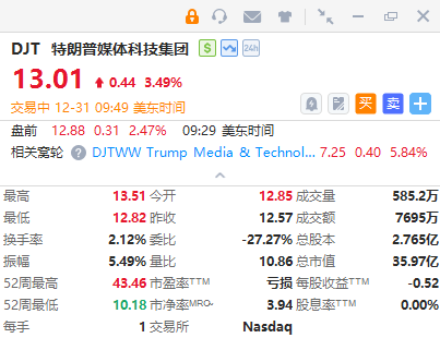 特朗普媒体科技集团涨约3.5%,此前宣布计划向股东分发数字代币。