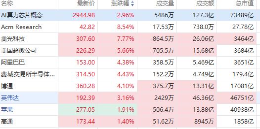 华盛资讯1月2日讯,美股AI芯片股集体走高,美光科技大涨近8%创新高,英特尔涨超6%,AMD涨超5%,博通、台积电涨超4%,英伟达涨超3%,谷歌涨超2%。