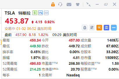 特斯拉涨近1%,2025全年汽车交付量达164万辆。