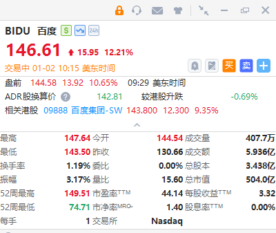 华盛资讯1月2日讯,热门中概股大幅上扬!百度飙升12%,公司宣布分拆昆仑芯赴港上市;